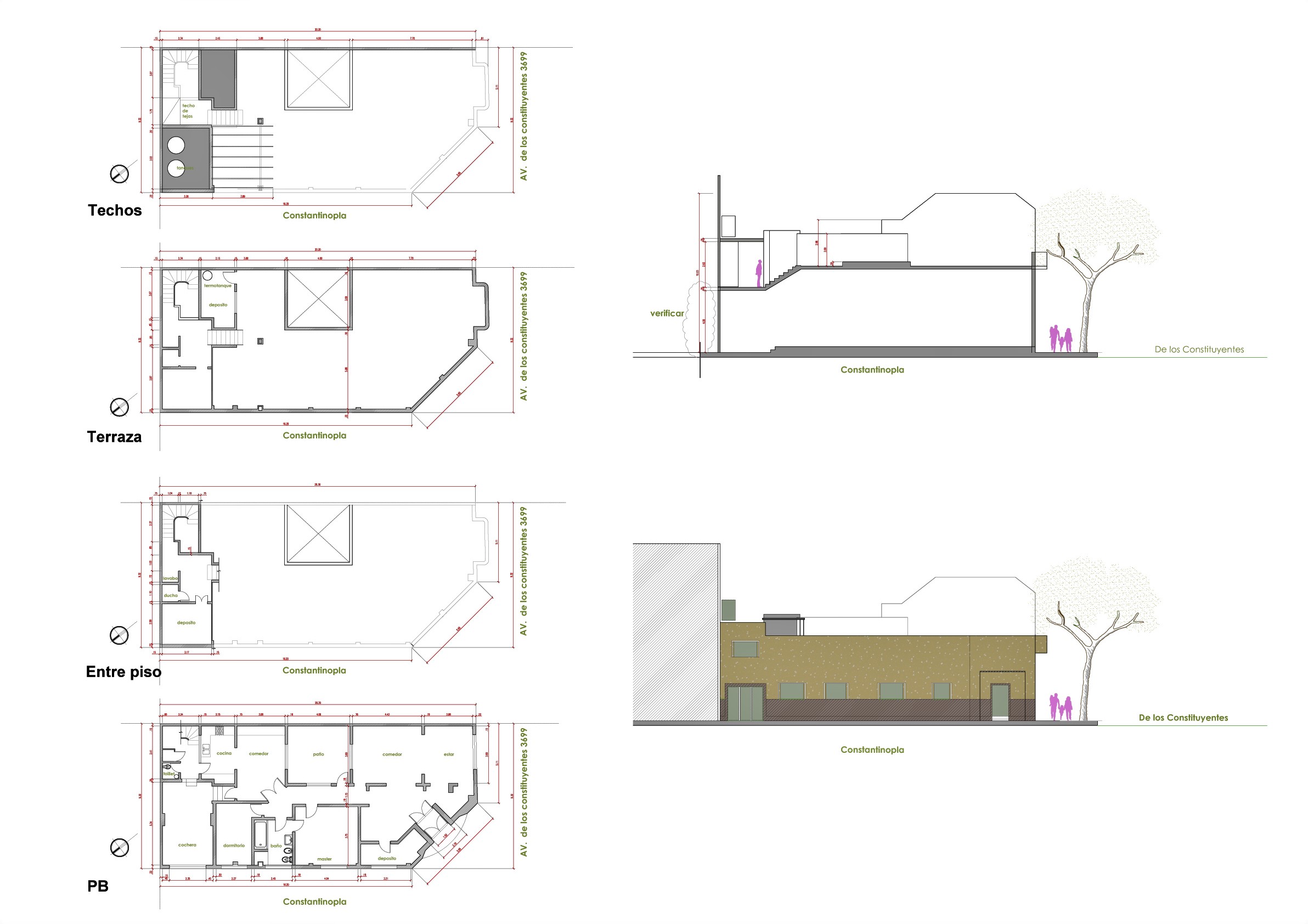 Reforma Casa en esquina de 70 años. Se solicitó reformar la planta baja y entrepiso en forma parcial y una ampliación en el nivel azotea.