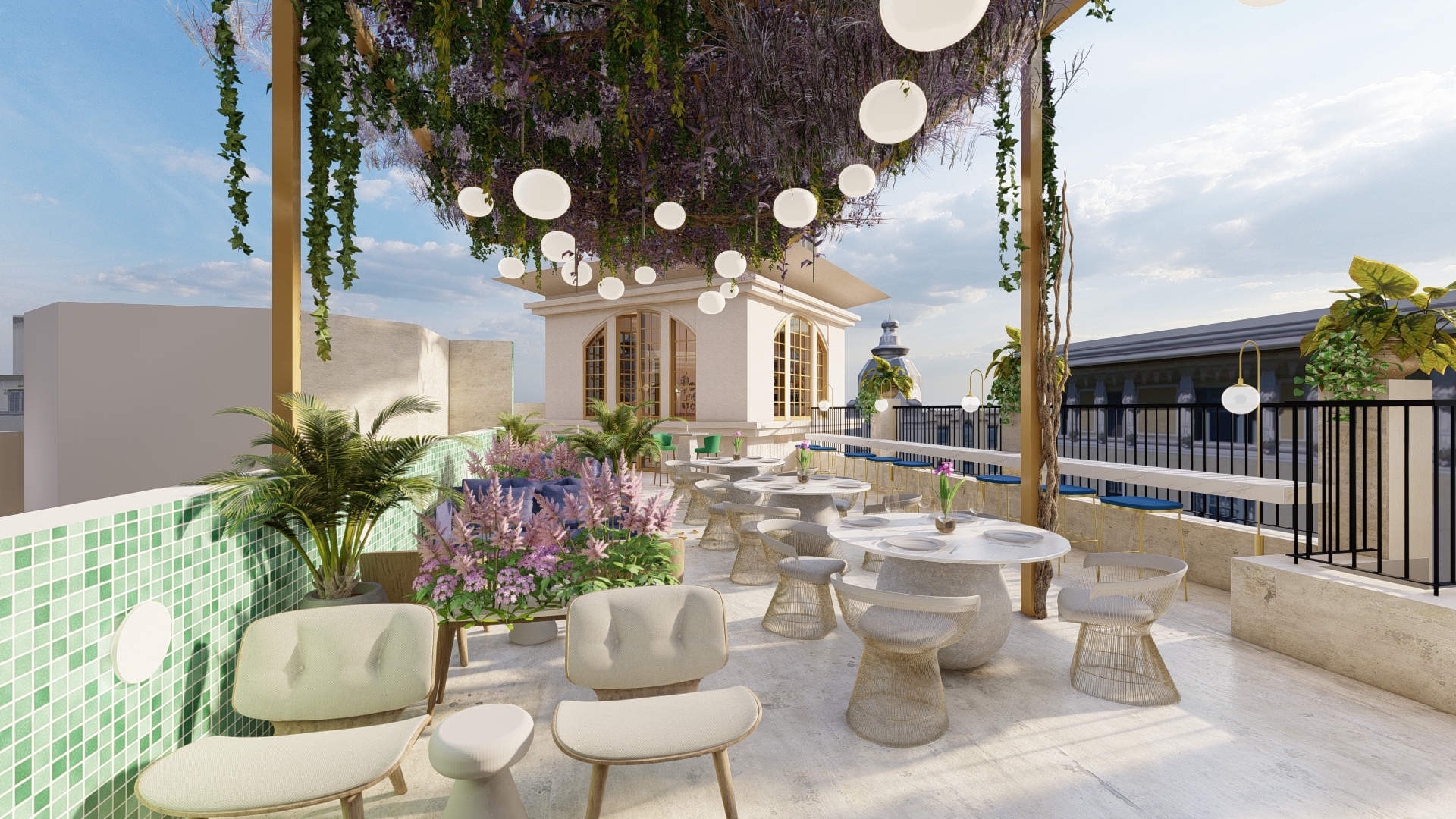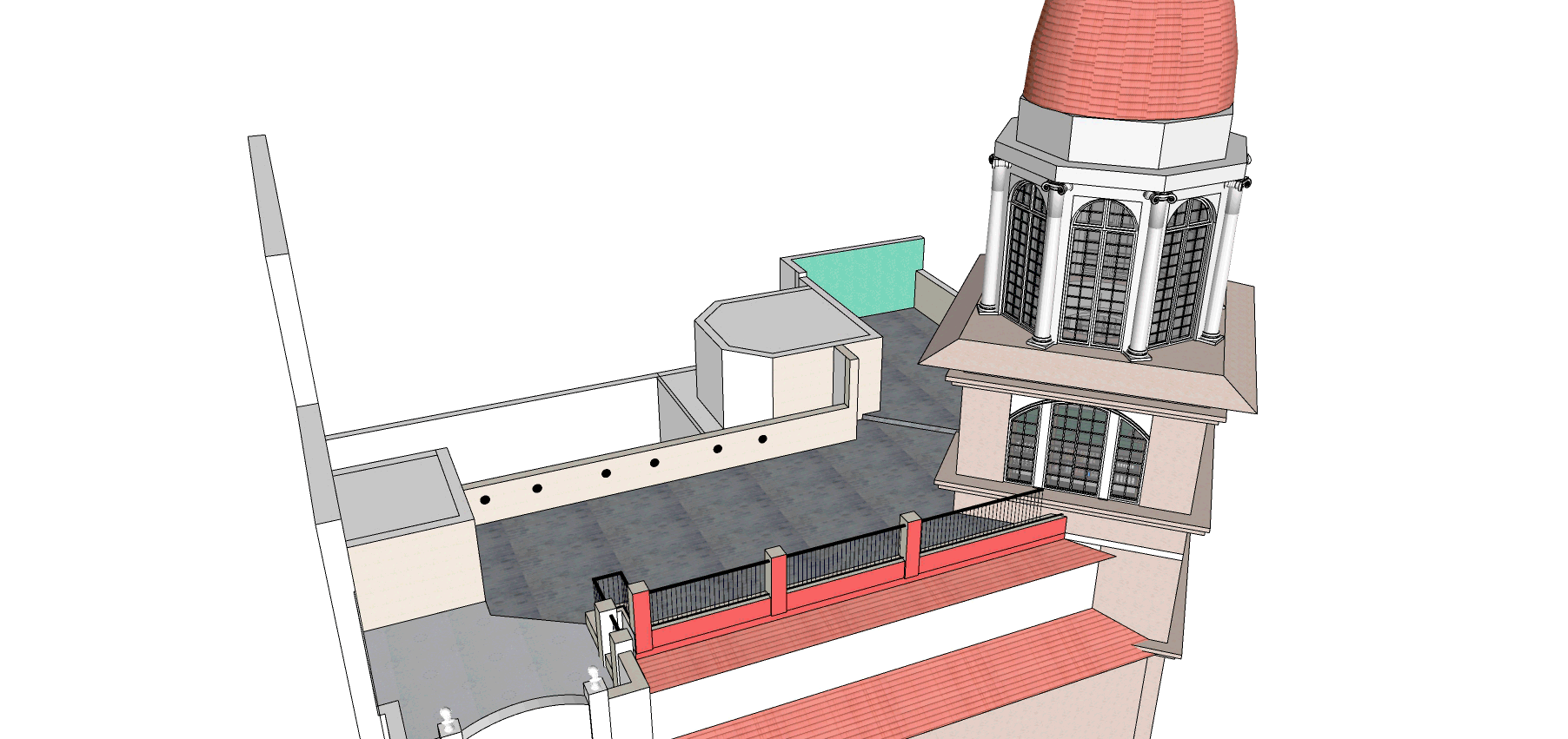 Con marcado estilo neo renacentista, cuenta con sus destacas cúpulas en las esquinas, su principal atractivo.